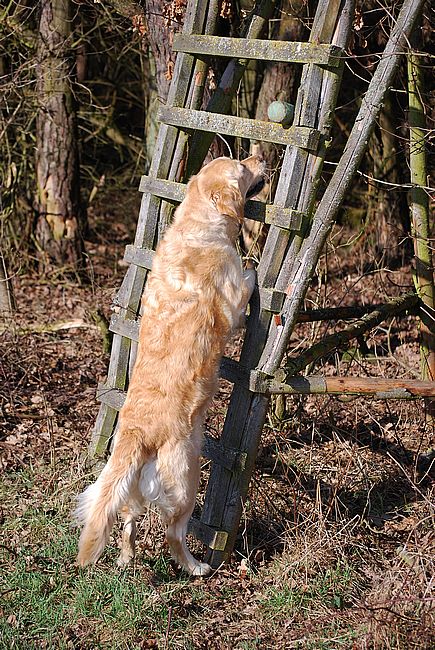 Luna und Lotta und das Dummy auf dem Hochsitz