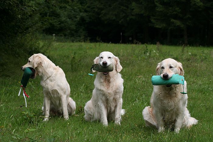 Lotta mit Luna & Amy, den beiden Goldendamen von Renner's